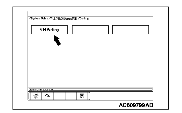 10. Select "VIN Writing" on "Coding" screen.