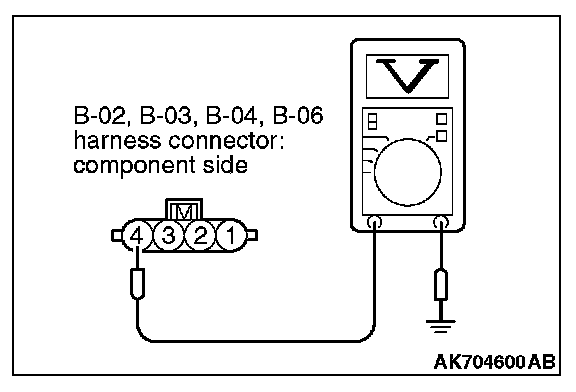 STEP 3. Measure the power supply voltage at ignition coil connectors B-02, B-03, B-04 and B-06.