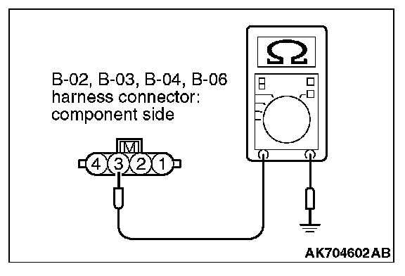 1. Disconnect the connectors B-02, B-03, B-04 and B-06 and measure at the harness side.