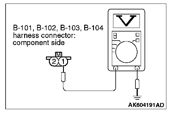 1. Disconnect connector B-101, B-102, B-103, B-104 and measure at the harness side.