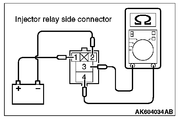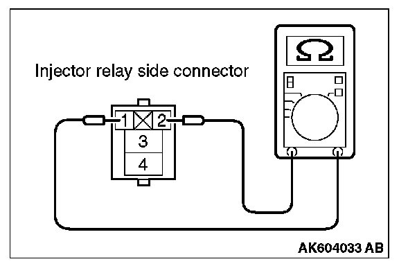 2. Check for continuity between the injector relay terminal No. 1 and No. 2. There should be continuity.