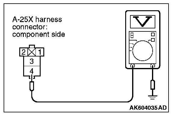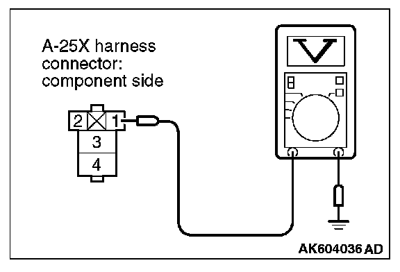 STEP 8. Measure the power supply voltage at injector relay harness side connector A-25X.