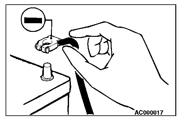 When checking or servicing does not require power from the vehicle battery, be sure to disconnect the cable from the battery (-) terminal. This will prevent problems that could be caused by a short circuit. Disconnect the (-) battery terminal first and reconnect it last.