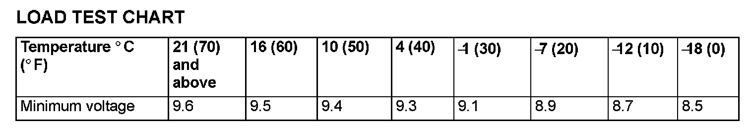 4. Compare the measured value with the minimum voltage (See LOAD TEST CHART).