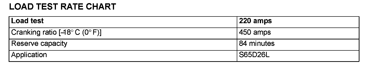 2. Load the battery at the recommended discharge rate (See LOAD TEST RATE CHART) for 15 seconds.