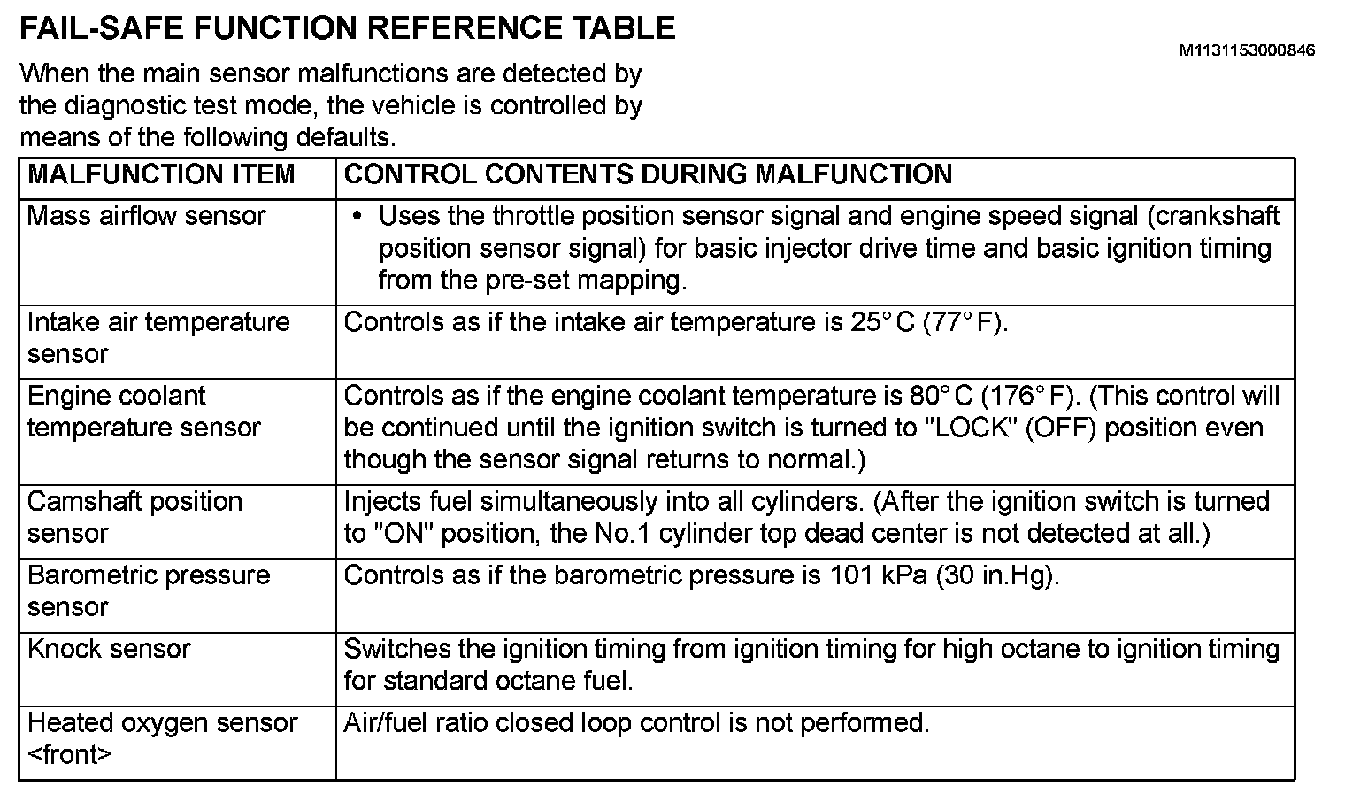 Fail-Safe Function Reference Table (Part 2):