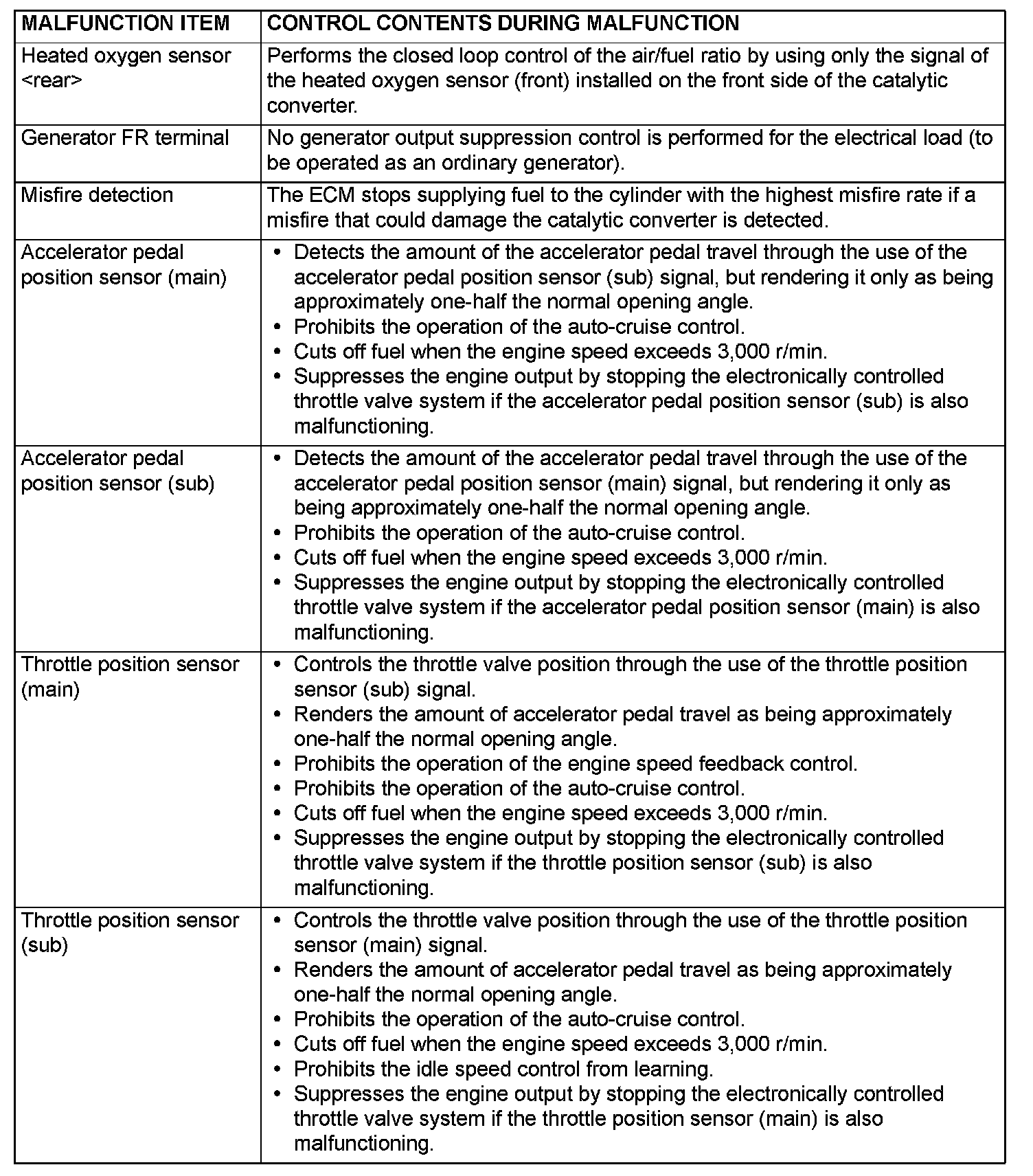 Fail-Safe Function Reference Table (Part 3):