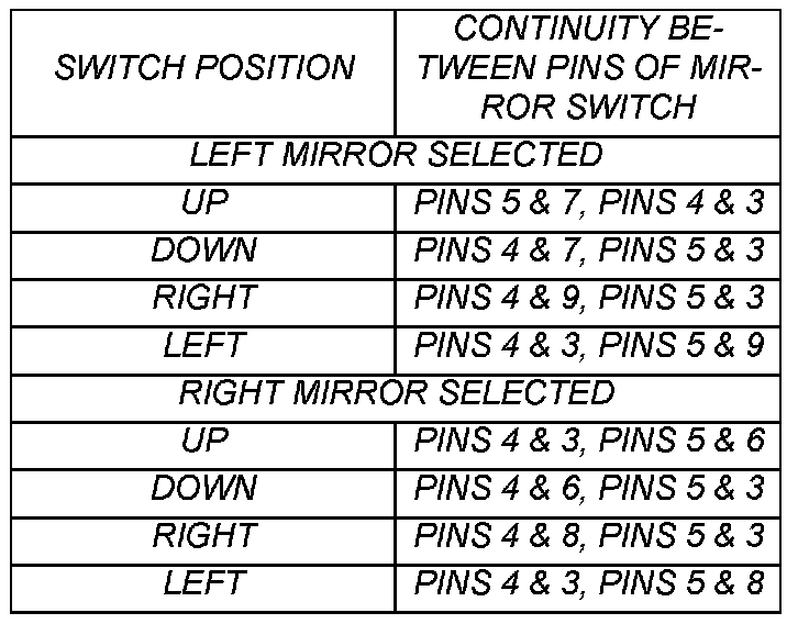 4. Test the switch continuity. See the Switch Tests chart to determine if the continuity is correct for the suspect switch in each switch position. If not OK, replace the inoperative switch as required.