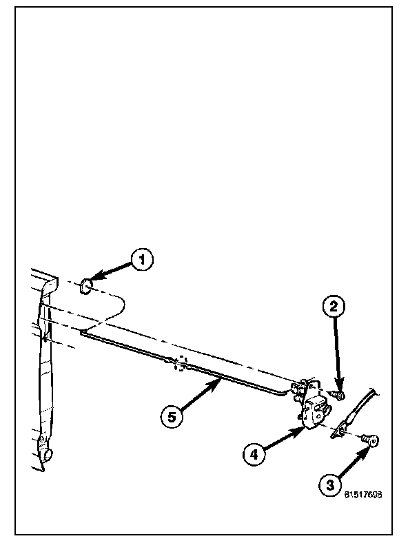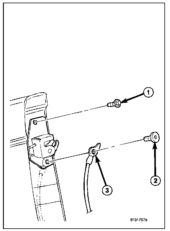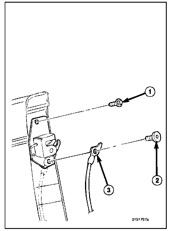 1. Remove the bolt (2) that secures the tailgate check cable (3) to the tailgate.