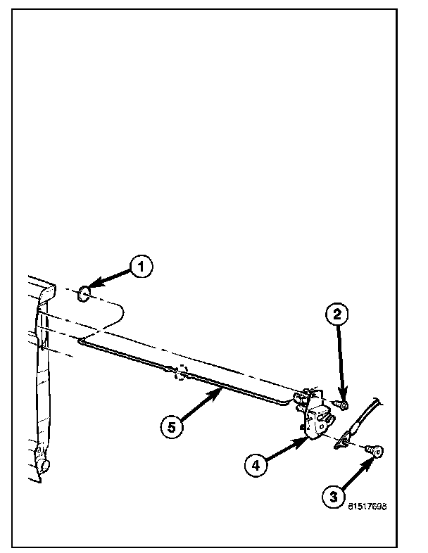 3. Remove the release handle link (5) from the latch (4).