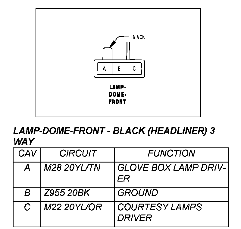 Lamp - Dome - Front - Black (Headliner) 3 Way: