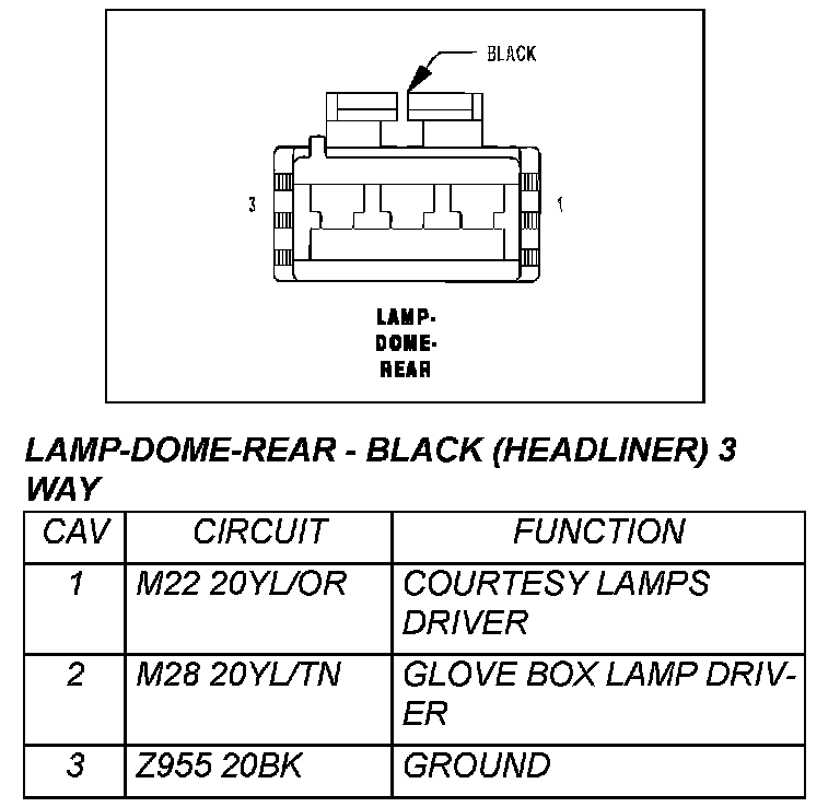 Lamp - Dome - Rear - Black (Headliner) 3 Way: