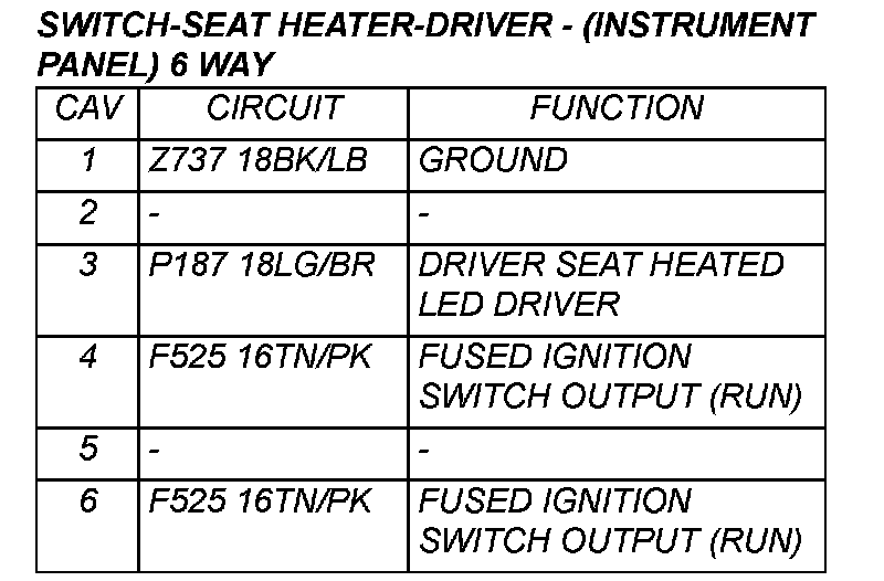 Switch - Seat Heater - Driver - (Instrument Panel) 6 Way (Part 2):