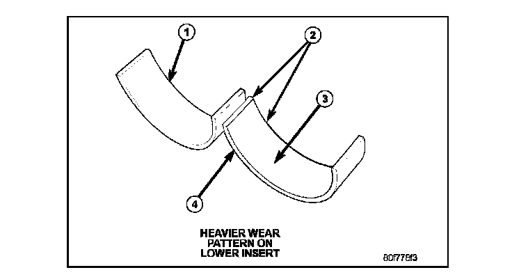 Inspect the connecting rod bearings for scoring (1) and (3). Check the bearings for normal wear patterns, scoring, grooving, fatigue and pitting. Replace any bearing that shows abnormal wear.