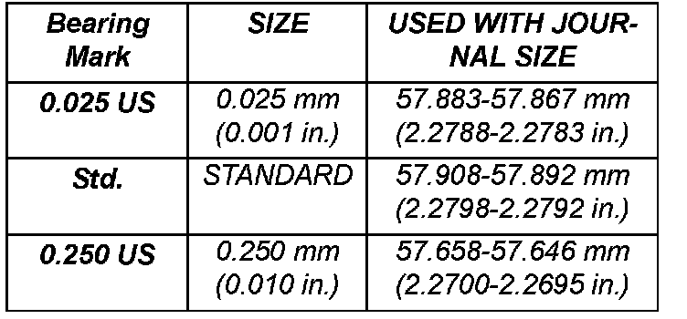 9. If bearing-to-journal clearance exceeds the specification, determine which service bearing set to use the bearing sizes are as follows: