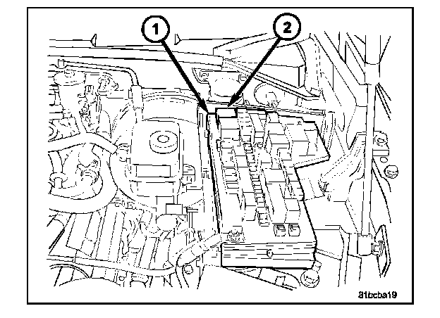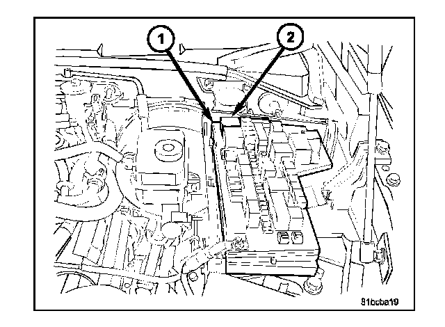 1. Position the blower motor relay (2) into the proper receptacle of the IPM (1).