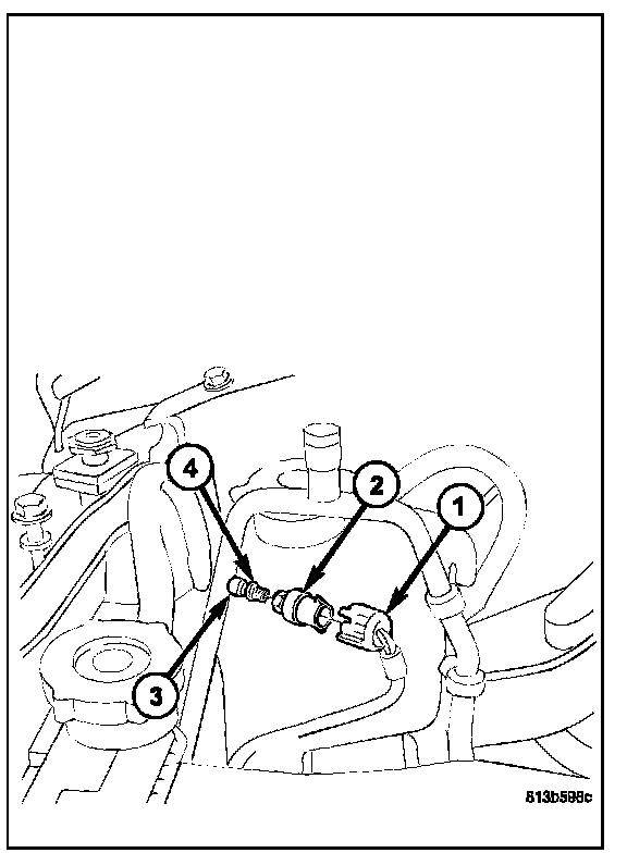 3. Remove the A/C pressure transducer from the A/ C liquid line (3).