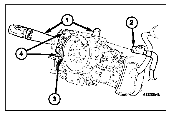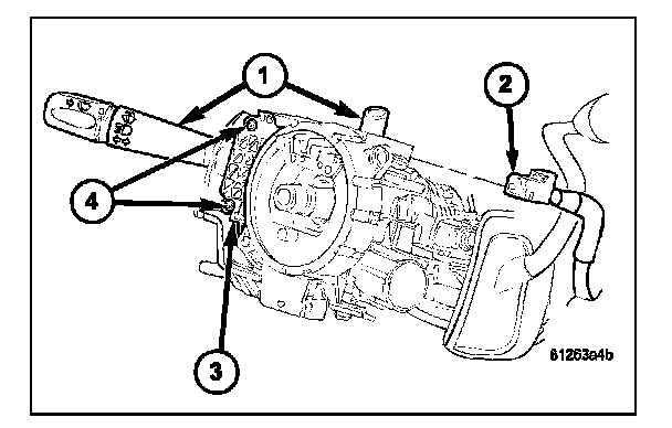 12. Remove the two screws (4) that secure the switch to the multi-function switch mounting housing (3).