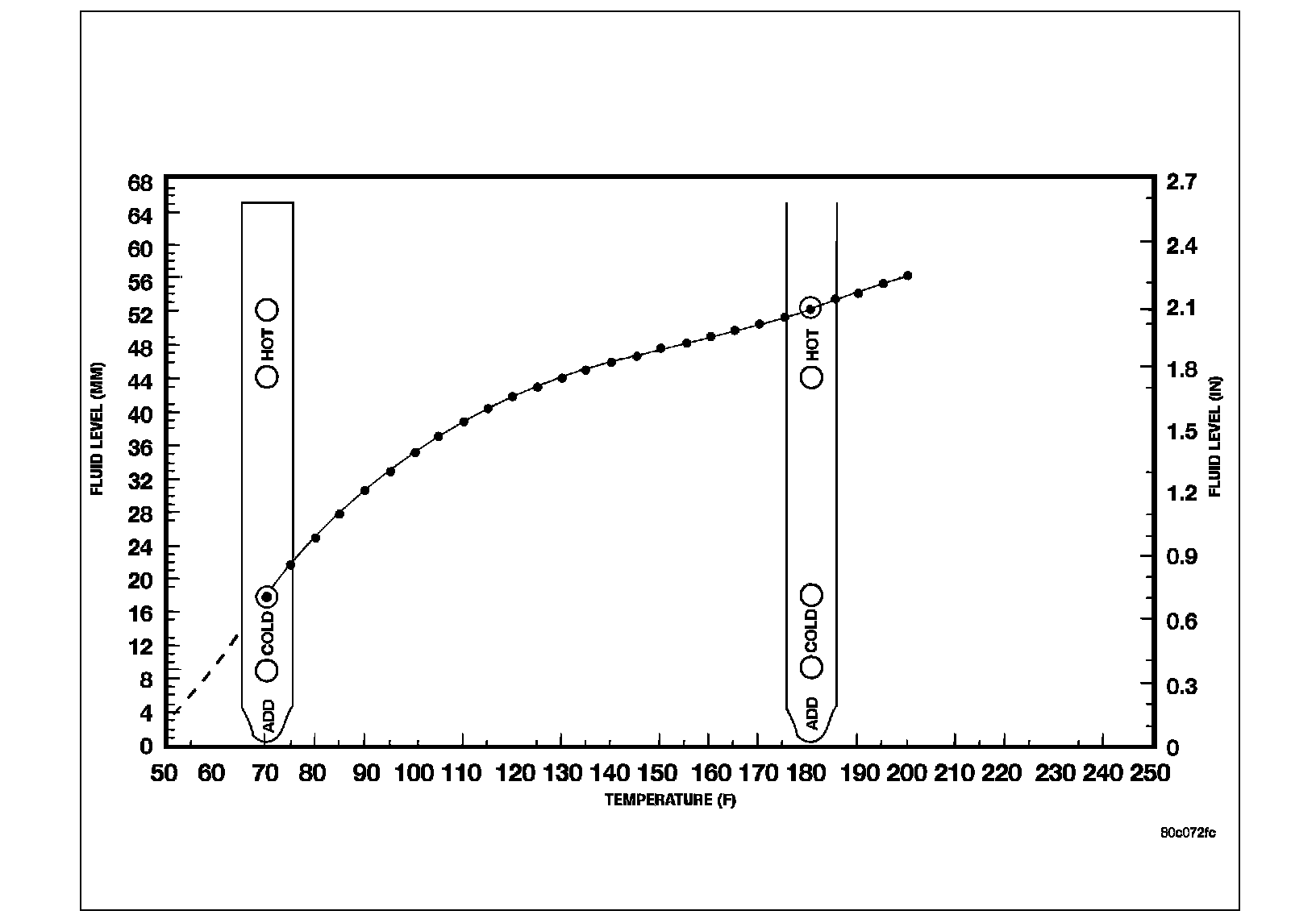 9. Adjust transmission fluid level shown on the dipstick according to the Transmission Fluid Temperature Chart.