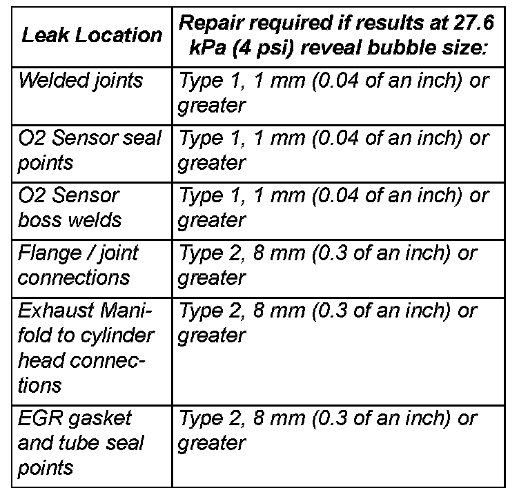 18. - Any Type 1 or greater leaks found in welded joints, O2 sensor seal points or O2 sensor boss welds must be repaired or the component must be replaced.