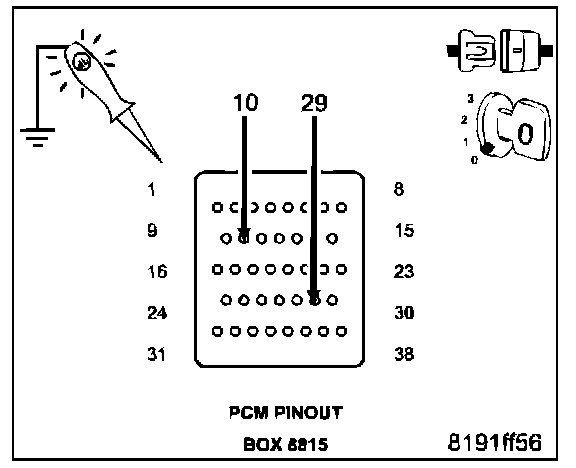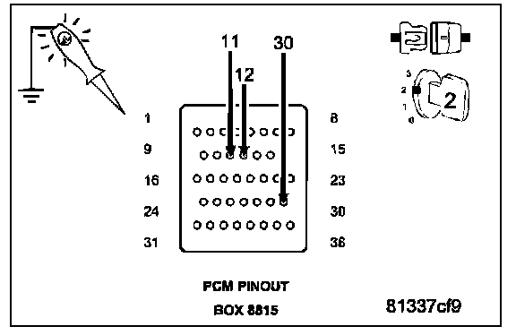 2. Using a 12 volt test light connected to 12 volts, check the PCM ground circuits.