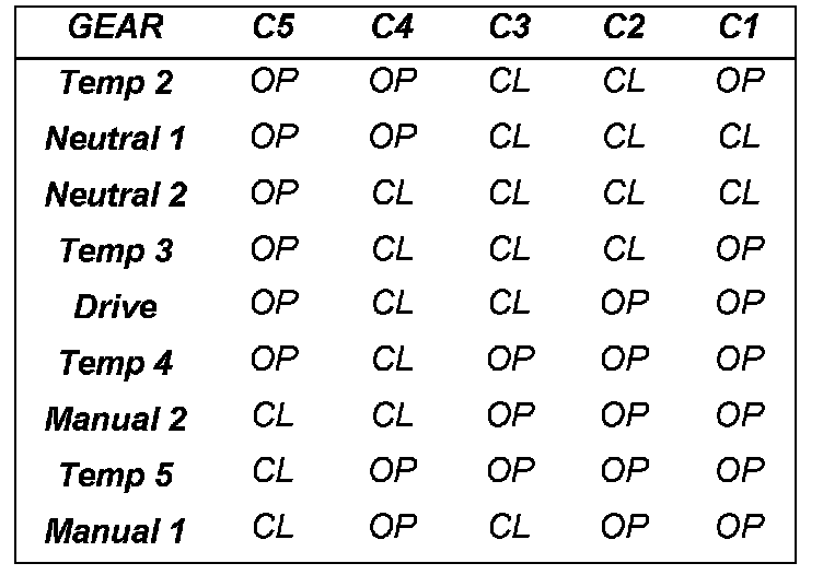 There are many possible combinations of open and closed switches (codes). Seven of these possible codes are related to gear position and five are recognized as "between gear" codes. This results in many codes which should never occur. These are called.invalid. codes. An invalid code will result in a DTC, and the TCM will then determine the shift lever position based on pressure switch data. This allows reasonably normal transmission operation with a TRS failure.