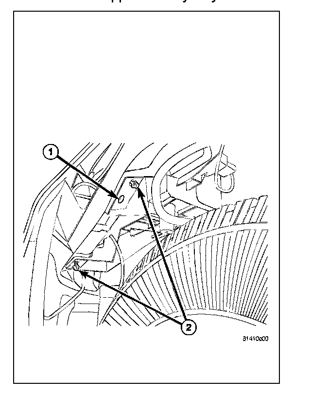 6. Install the two lower battery tray bolts (2). Tighten the bolts to 10 Nm (90 in. lbs.).
