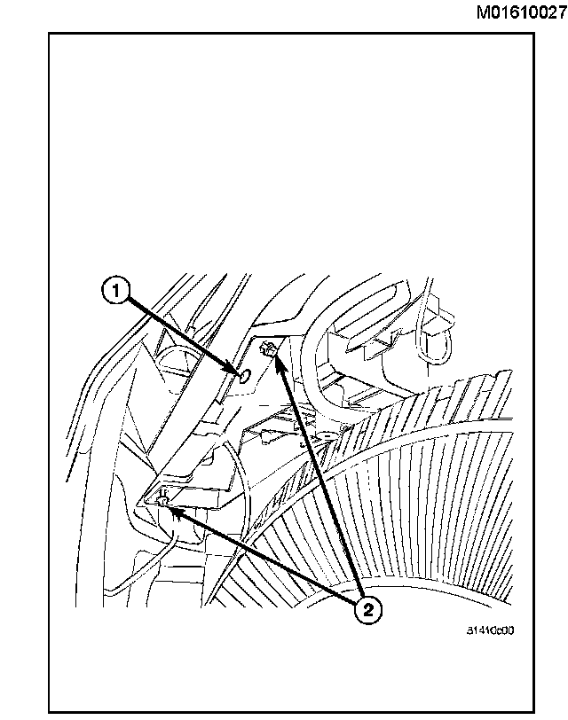 12. Remove the lower battery tray mounting bolts (2).