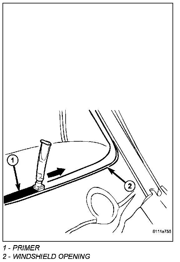 2. If necessary, apply black-out primer to outer edge of replacement backlite frame (1).