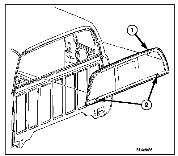 13. On extended cab models, install the upper c-pillar trim (2).
