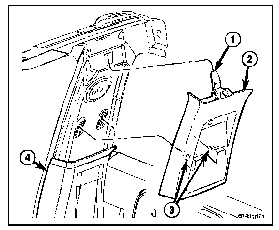 4. On double cab models remove the upper c-pillar trim (2).