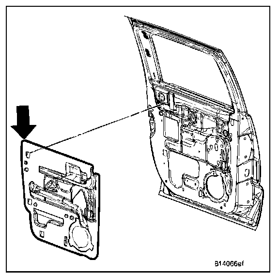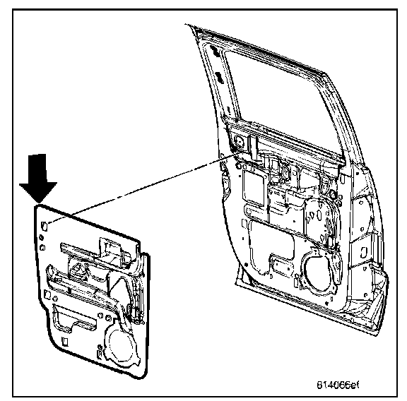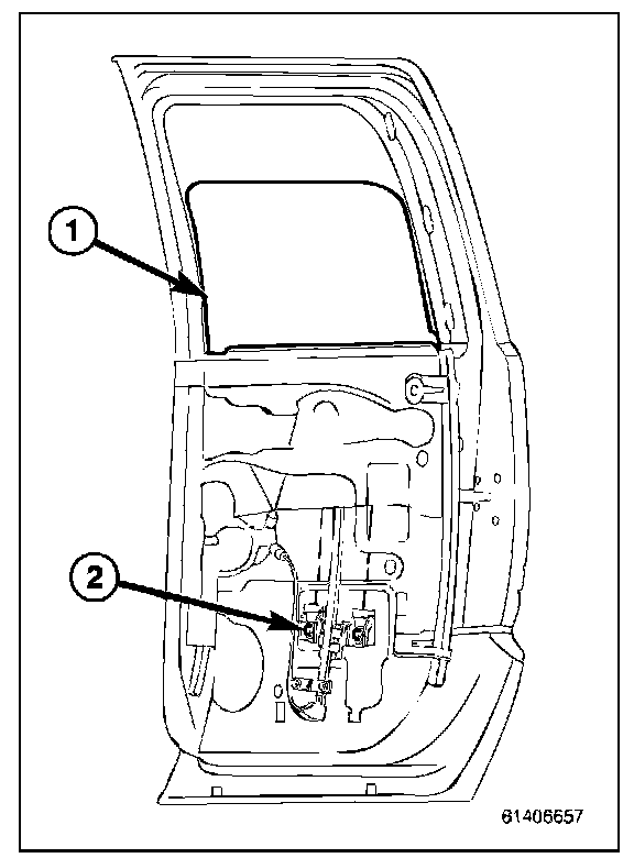 8. Lift regulator (1) up and out of the keyhole slots and remove from door.