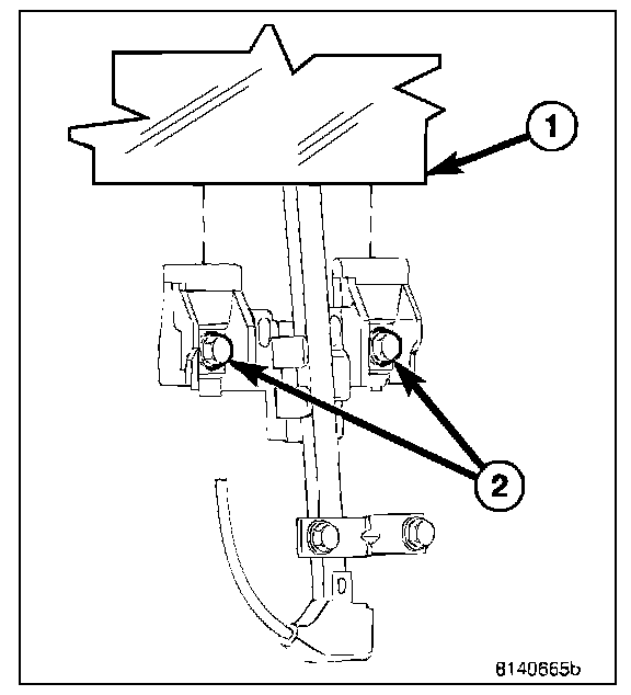 5. Remove the tape used to secure the glass during removal and position the glass (1) into the glass clamps.