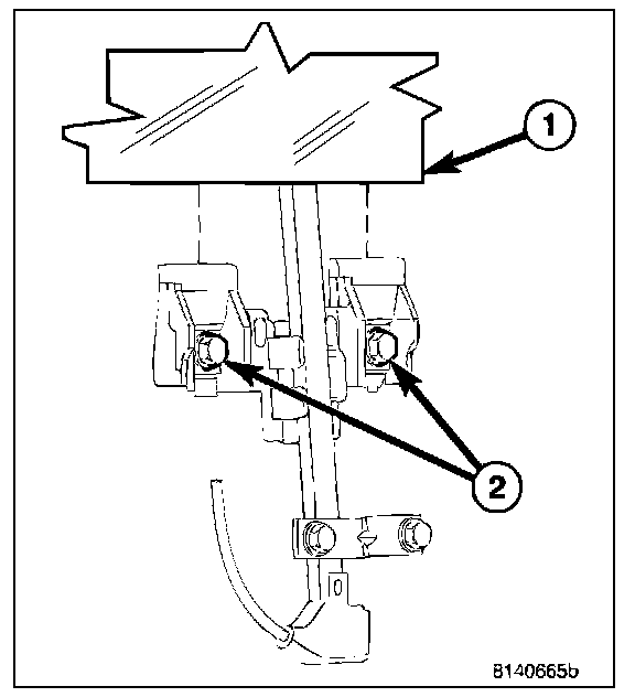 7. Loosen the remaining three regulator bolts (2) located at the keyhole slots.