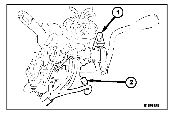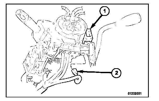 10. Remove the screw (2) that secures the SKREEM (1) to the steering column housing.