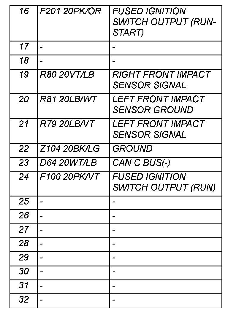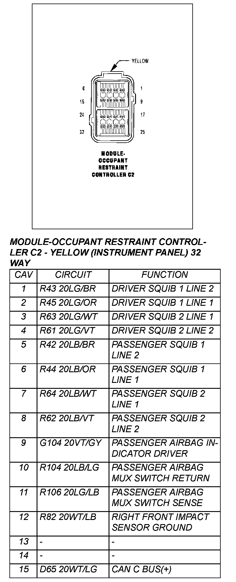 Module - Occupant Restraint Controller C2 - Yellow (Instrument Panel) 32 Way (Part 2):