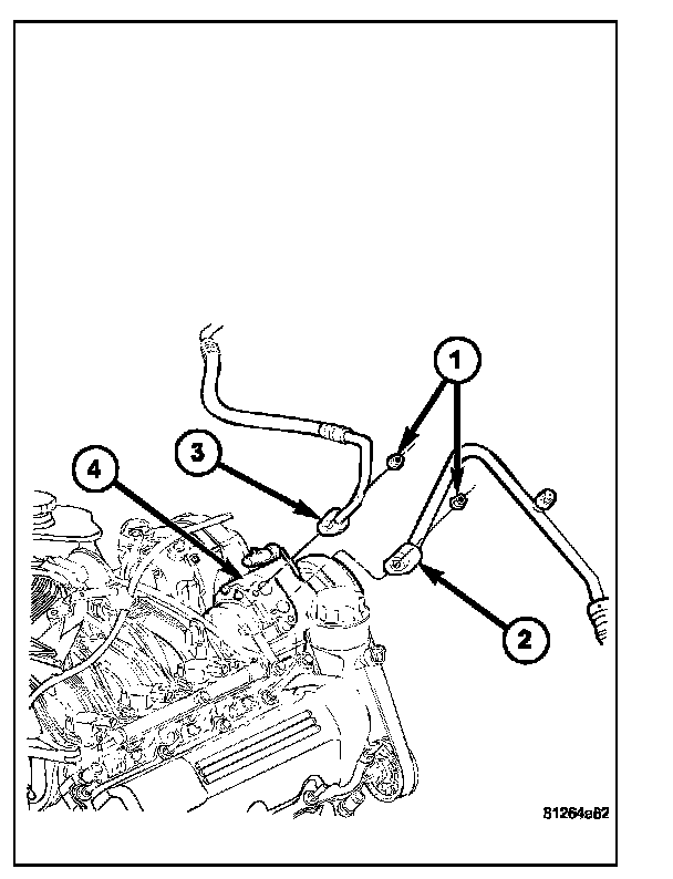 1. If the A/C compressor (2) is being replaced, the refrigerant oil in the old compressor must be first drained and measured. Then the oil in the new A/ C compressor must be drained. Finally, the new compressor must be refilled with the same amount of new refrigerant oil that was drained out of the old compressor. When replacing multiple A/C system components, refer to the Refrigerant Oil Capacities chart to determine how much oil should be added to the refrigerant system. Use only refrigerant oil of the type recommended for the A/C compressor in the vehicle.