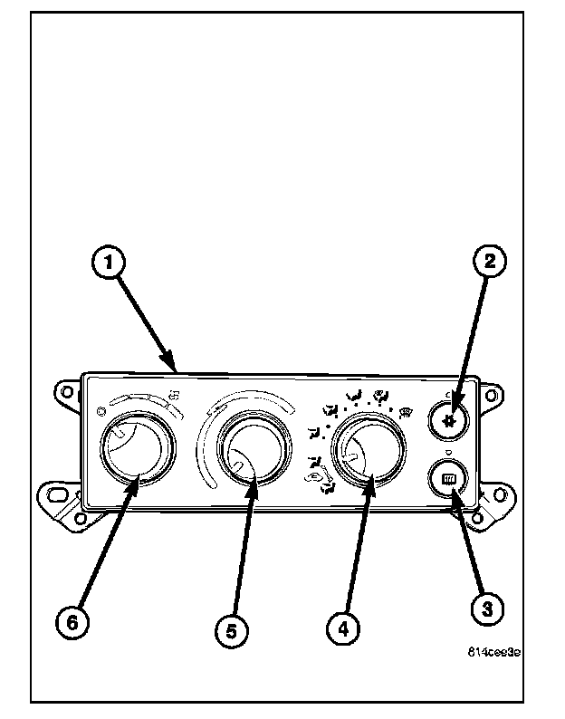- a push button A/C on/off control (2). The Snow-flake button contains an LED that illuminates when the A/C system is in operation.