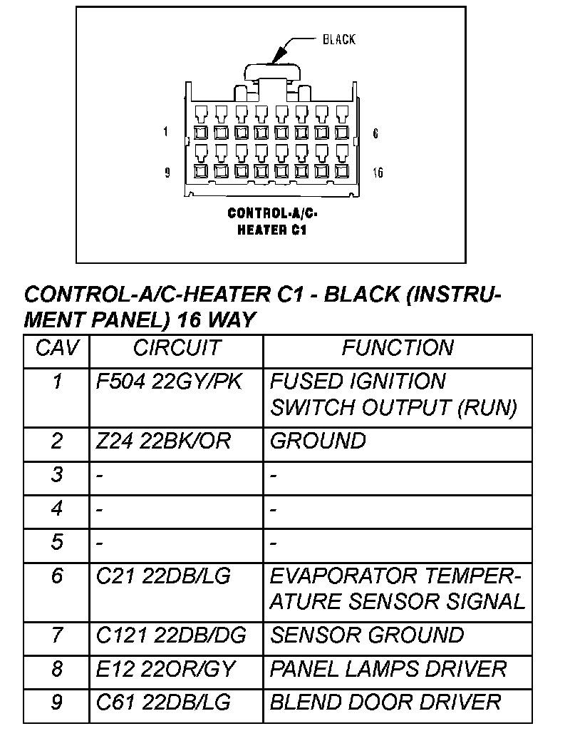 Control - A/C - Heater C1 - Black (Instrument Panel) 16 Way (Part 2):