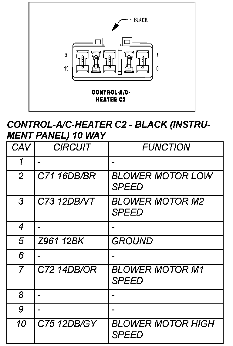 Control - A/C - Heater C2 - Black (Instrument Panel) 10 Way: