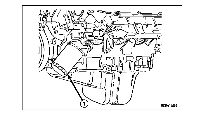 3. Rotate the oil filter (1) counterclockwise to remove it from the cylinder block oil filter boss.