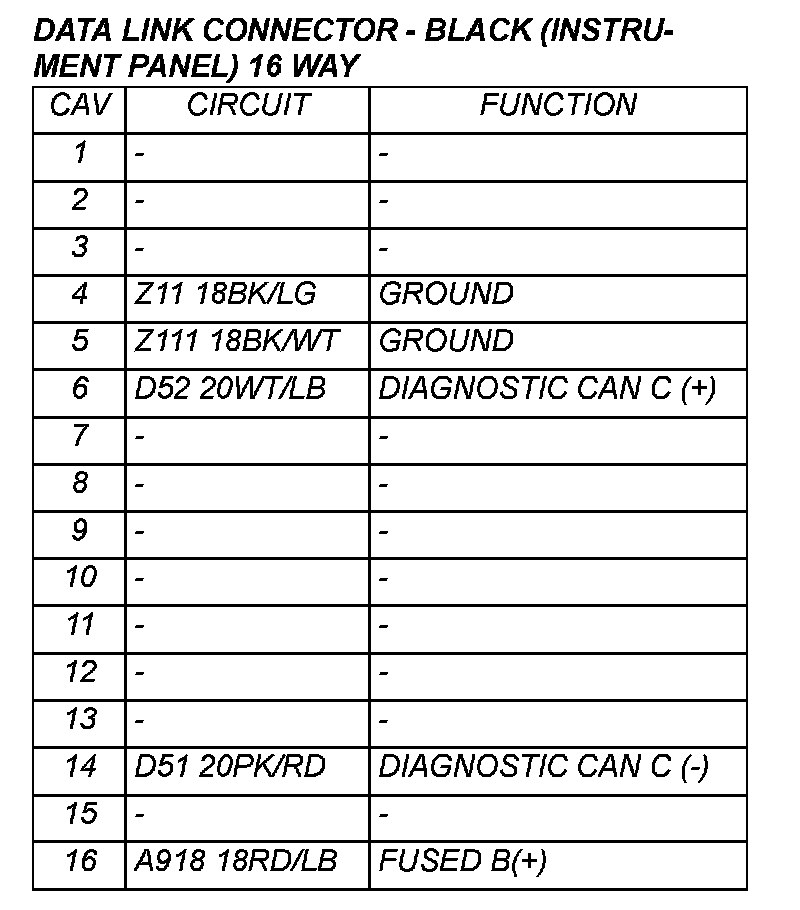 Data Link Connector: Diagrams