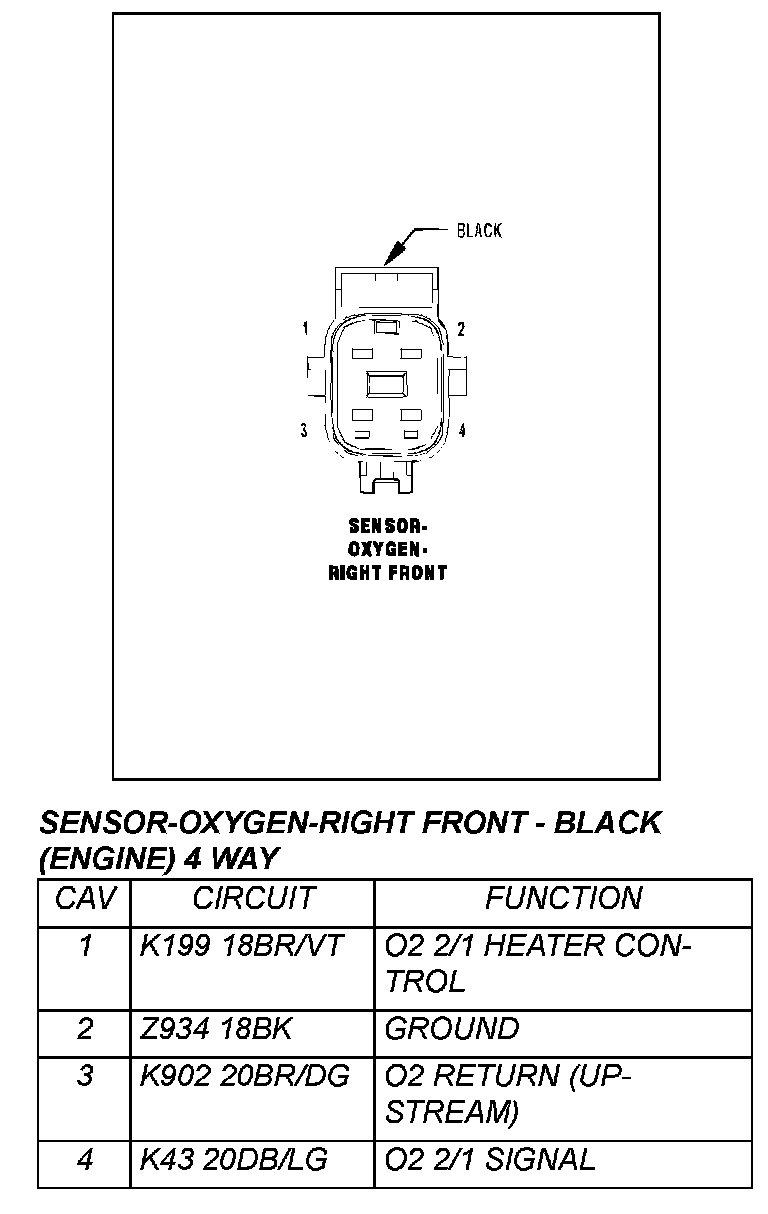 Sensor - Oxygen - Right - Front - Black (Engine) 4 Way:
