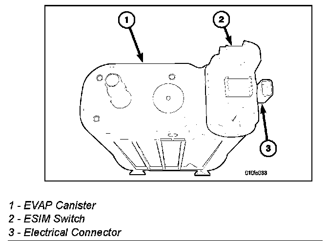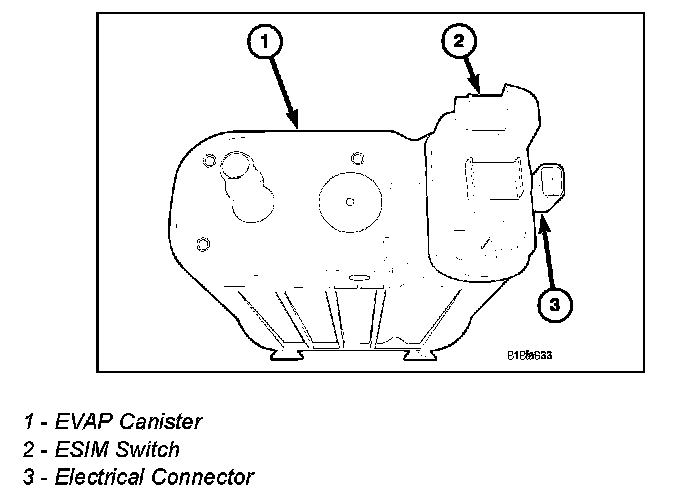REMOVAL - SWITCH - EVAP SYSTEM MONITORThe ESIM (EVAP System Integrity Monitor) switch is attached to the EVAP canister and is usually not serviceable. Replace the switch by replacing the EVAP canister. Refer to EVAP canister removal/installation. If servicing separately, refer to the following: