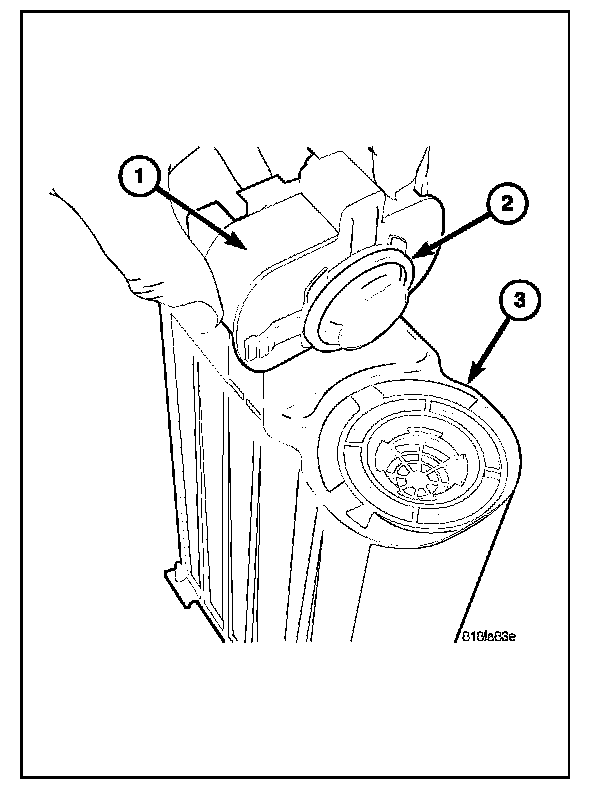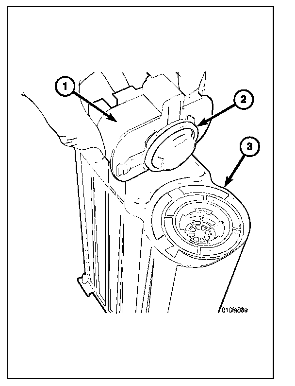 3. Position ESIM switch (2) into EVAP canister (1) and rotate until electrical connector is in 3 O'clock position (3).