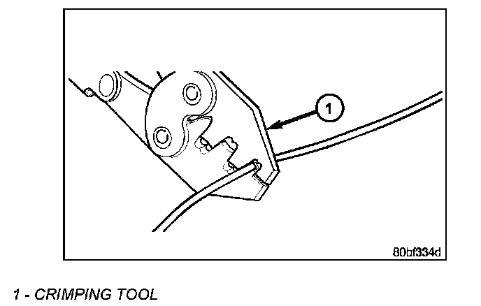 4. Using a crimping tool (1), crimp the splice clip and wires together.