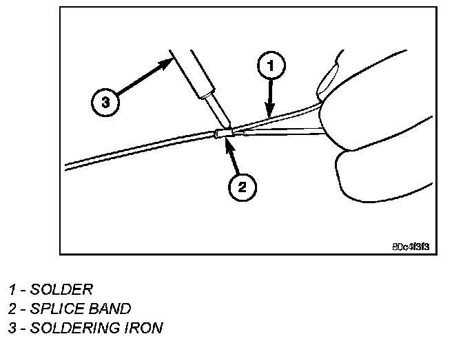 5. Solder (3) the connection (2) together using rosin core type solder (1) only.