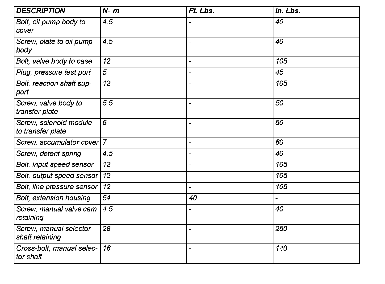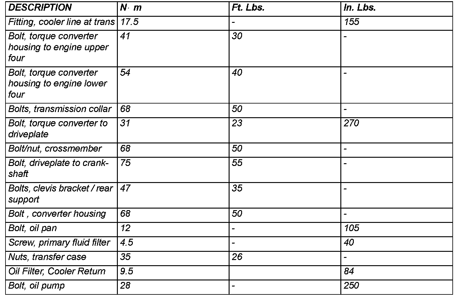 TORQUE SPECIFICATIONS