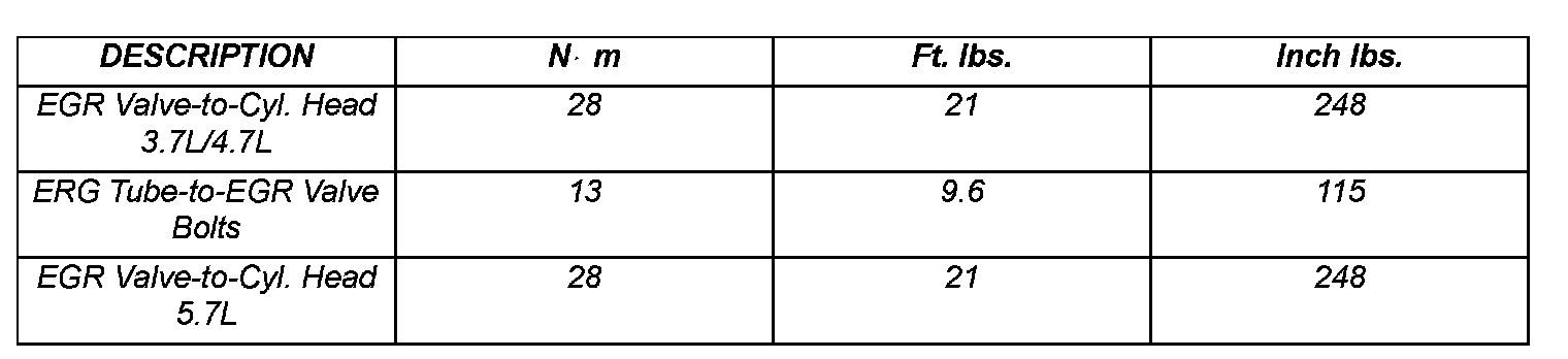 Torque Specifications: