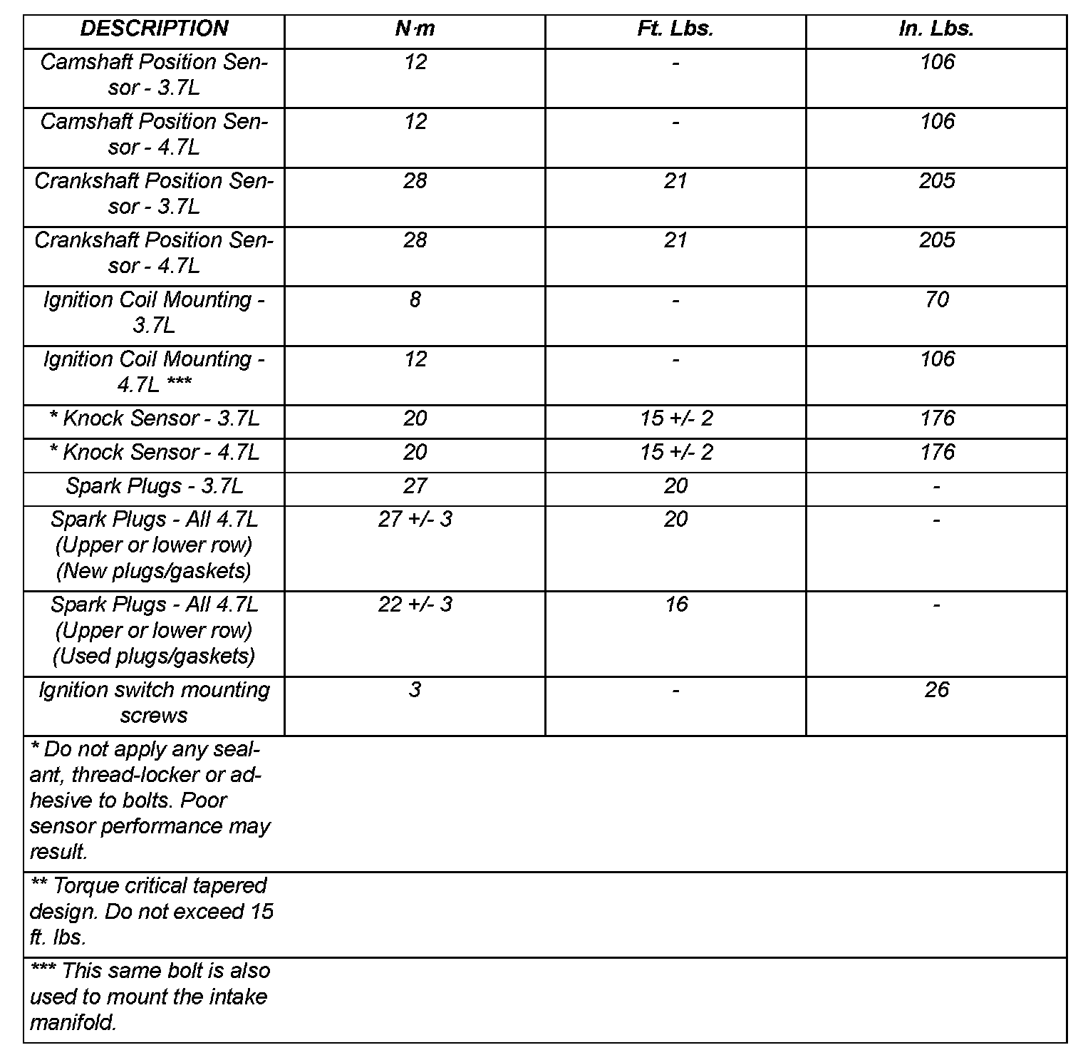 Specifications - Torque: